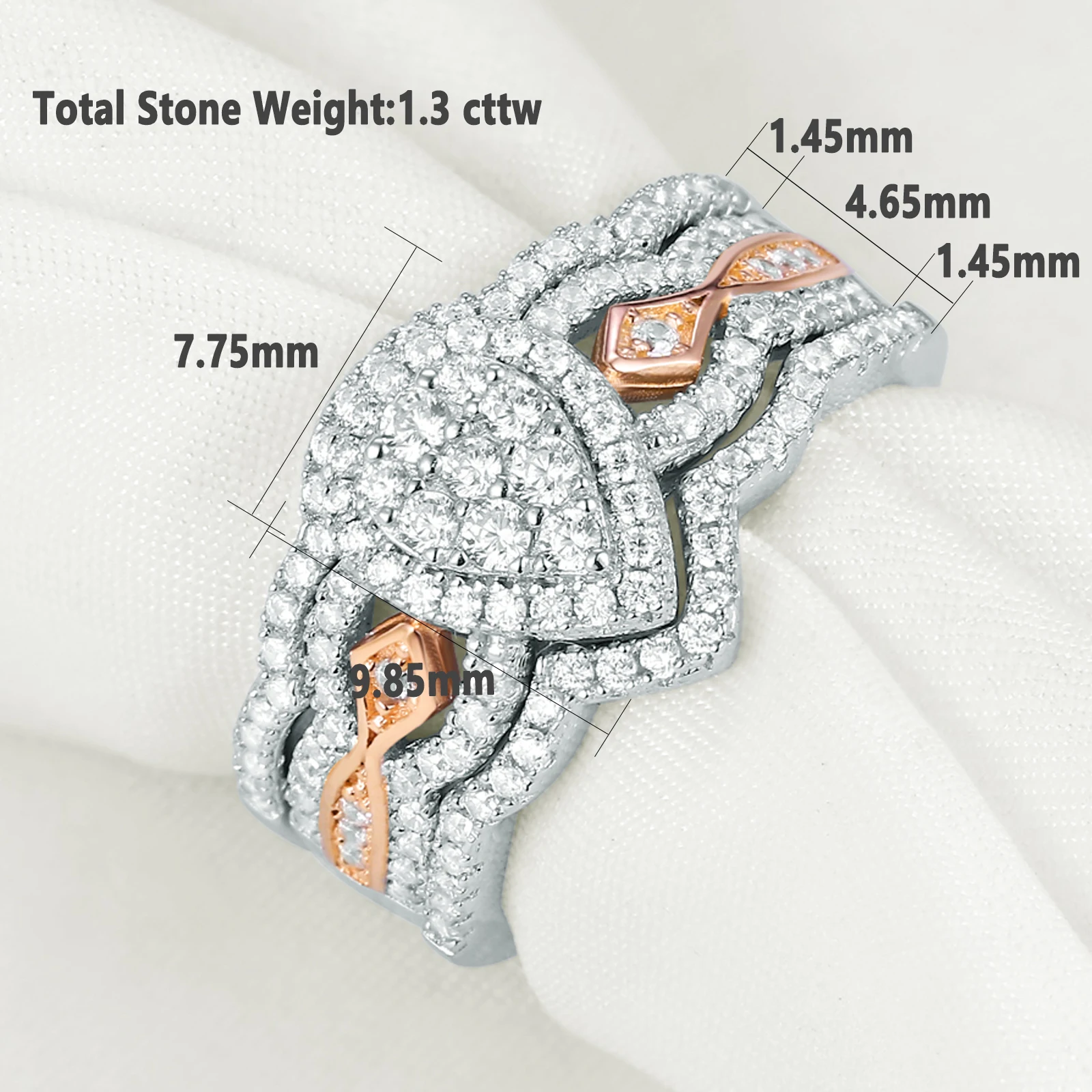 3 Pcs 925 Sterling Silver Wedding Rings for Women 1.3 Ct Double Pear Shape AAAAA CZ Engagement Ring Set Clearance Sale