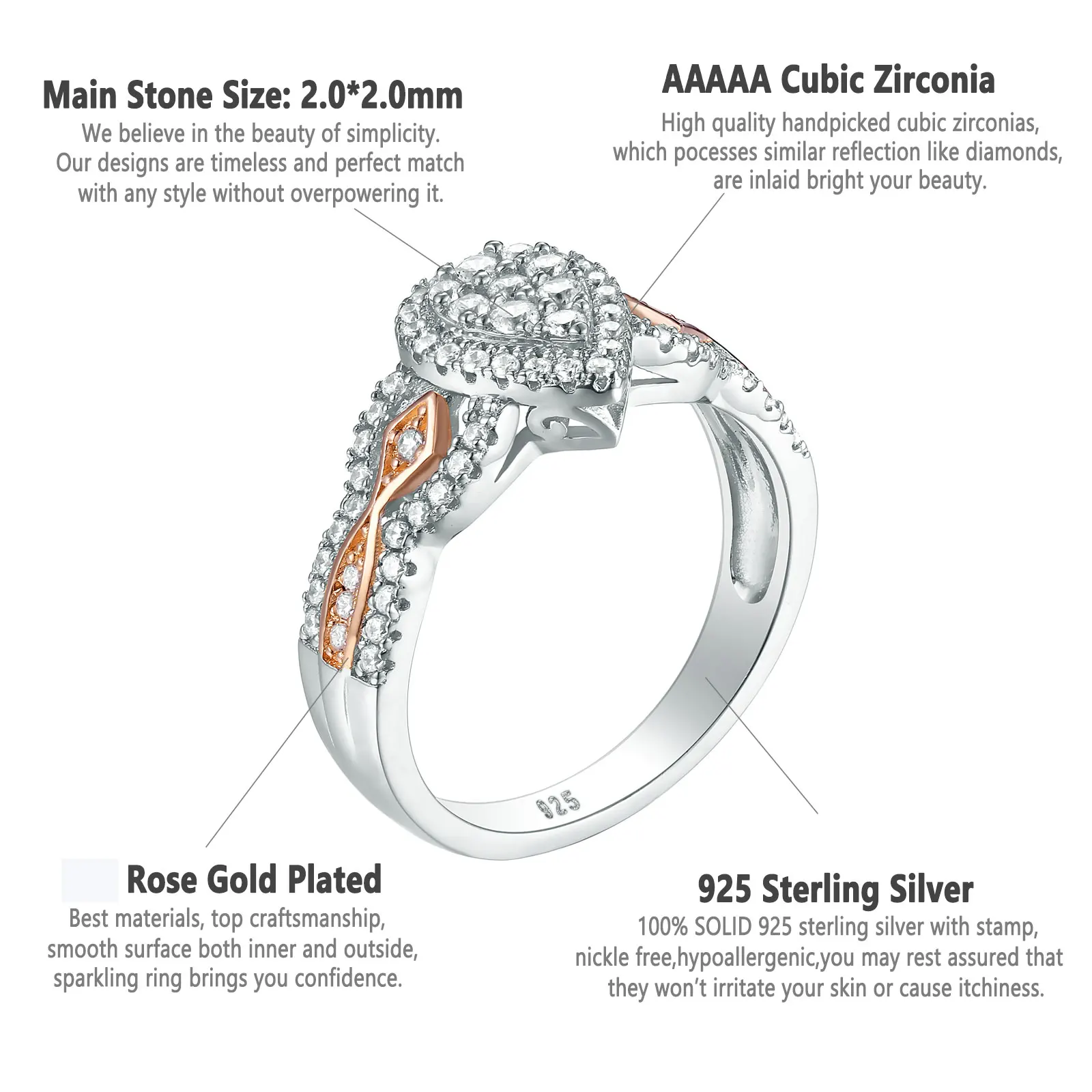 Main Stone size:2*2 mm, Round cut