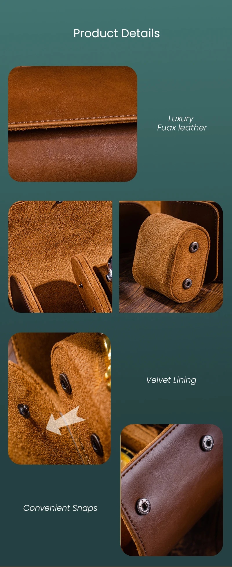 【Elegant Craftsmanship】 Discover the allure of our Luxury Fuax leather Watch Travel Case, a perfect blend of practicality and elegance. The hand-stitched leather, paired with a soft velvet lining and secure metal fastenings, showcases a classic elegance that makes this case a visually stunning home for your watches.
