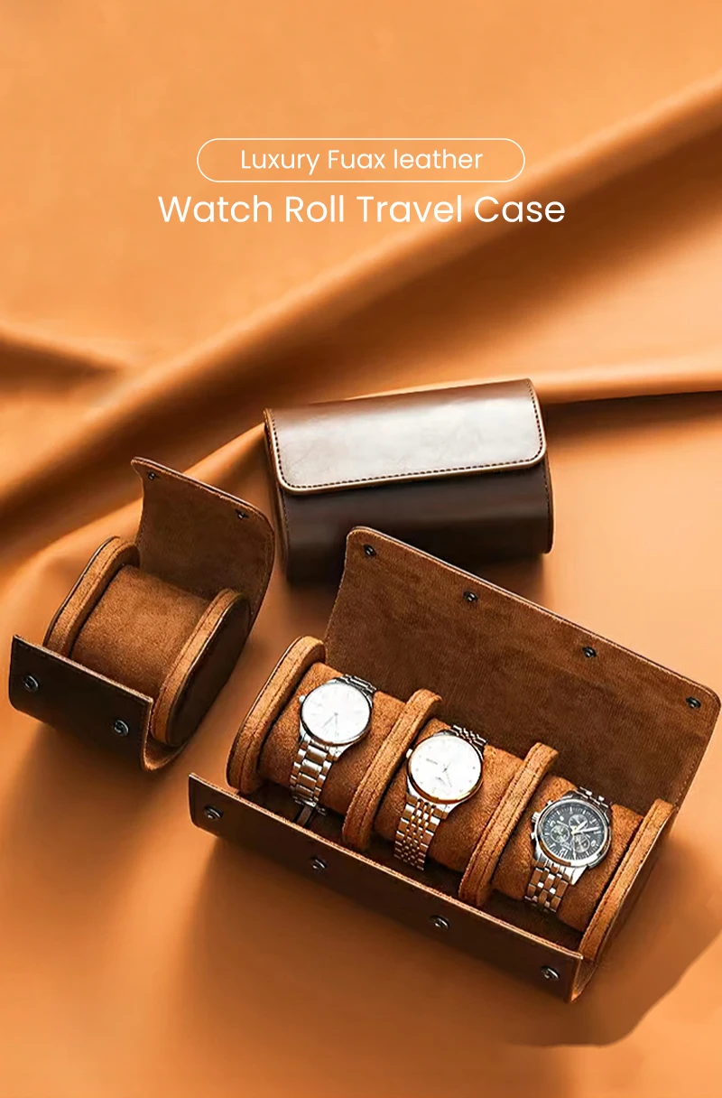 Travel Watch Case Roll Organizer for Men Vegan Faux Leather Watch Display Case Watch Storage Holder for Collection